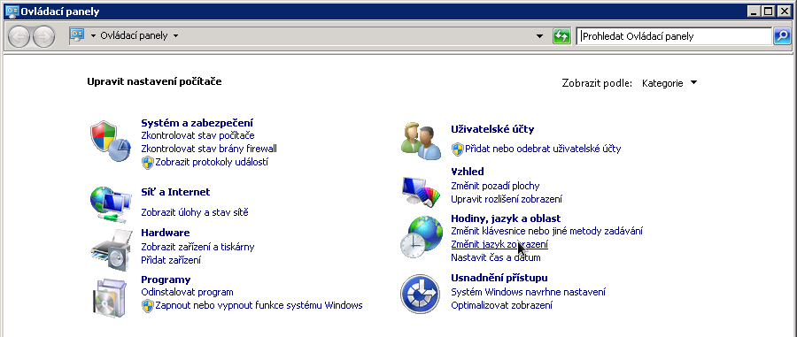 Nastavení jazyka v systému MS Windows Server 2008