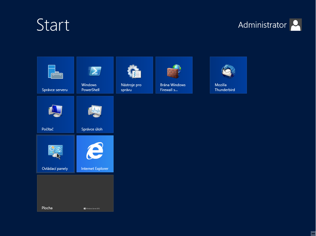 Po přihlášení do vašeho Axfone Microsoft VPS server přejděte do nabídky "Start" a zvolte položku "Ovládací panely (Control panel)."