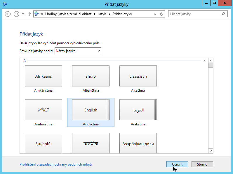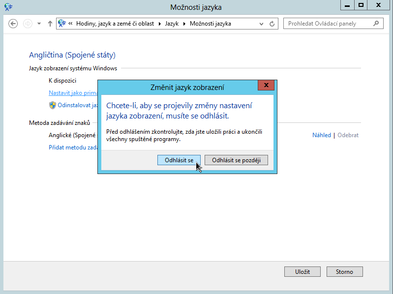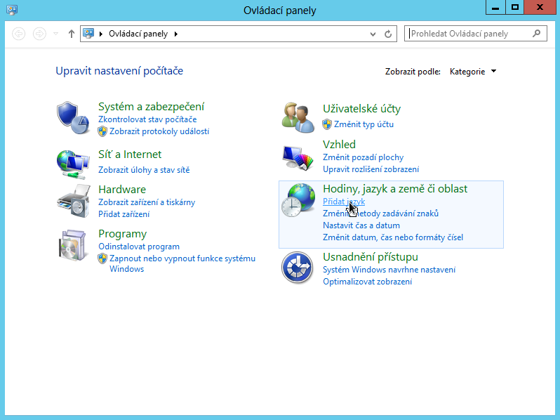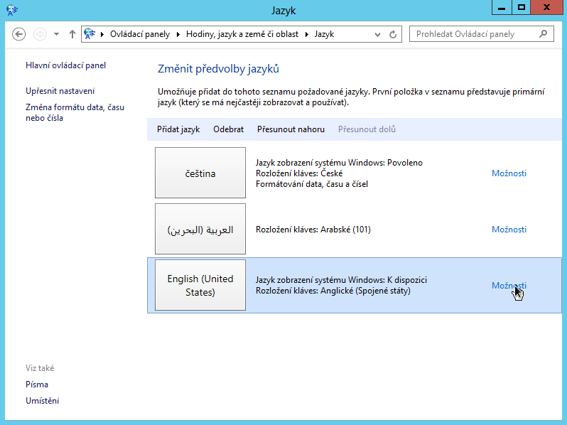Nastavení jazyka v systému MS Windows Server 2012 a 2016